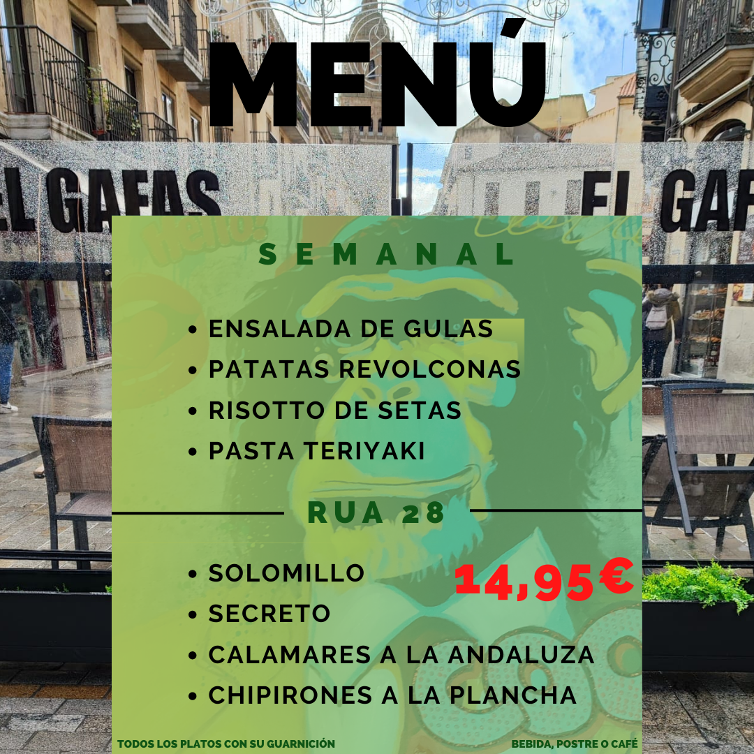 Welcome to El Gafas Rua 28, a charming café nestled in the heart of Salamanca on Rúa Mayor, 28. This delightful eatery invites you to indulge in a vibrant menu that perfectly blends traditional Spanish flavors with modern touches.